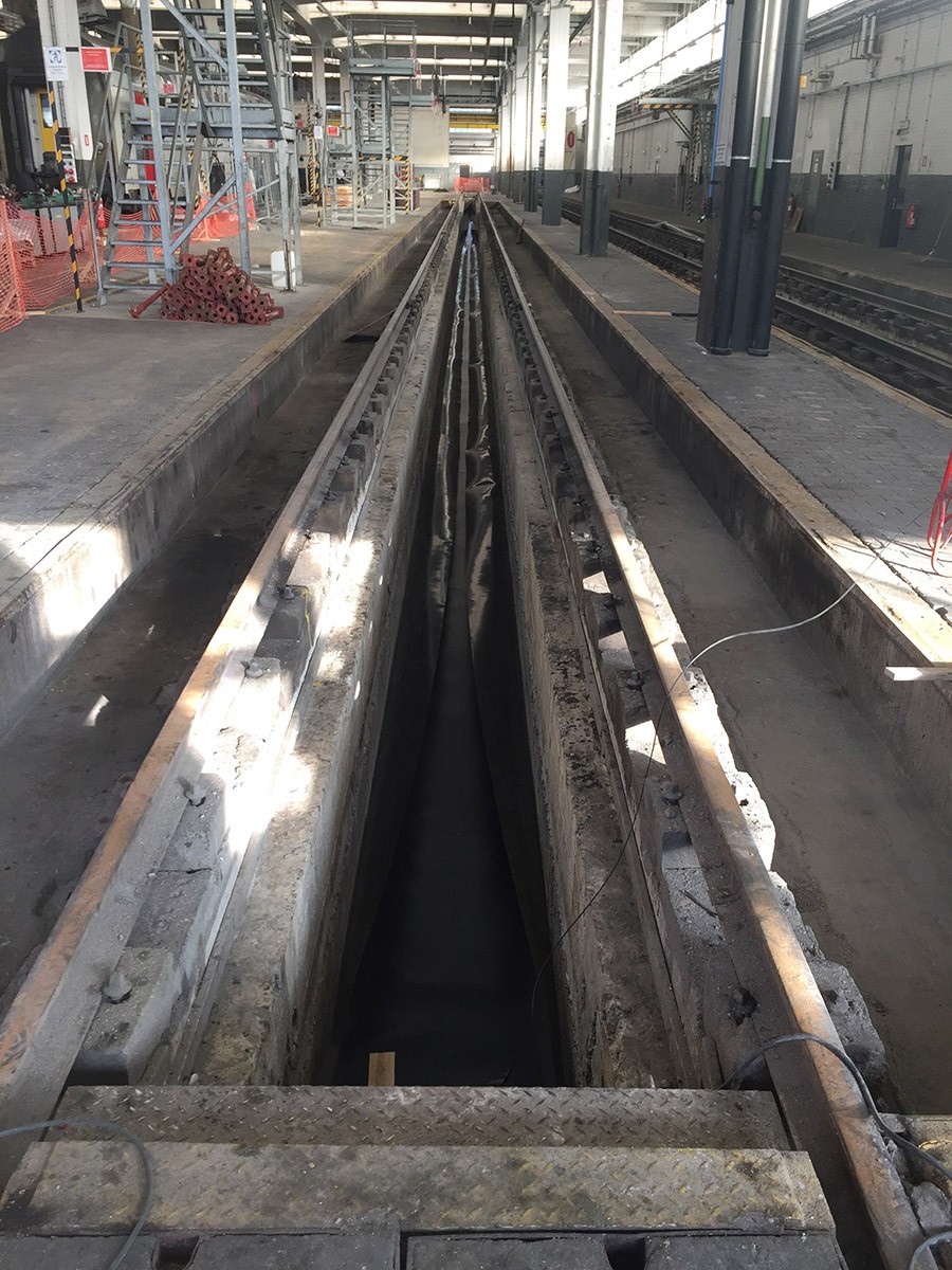 In opdracht van Stadsbader NV werd met HDPE-folie van 2mm een waterdicht membraan geplaatst in een onderhoudsput van de spoorwegmaatschappij (NMBS) in Kortrijk. Afdichten met HDPE-folie zorgt ervoor dat geen water of vocht nog in de put kan, kon komen. De HDPE-folie werd geplaatst tegen wanden en vloer van de smeerput, waarna deze werd voorzien van een nieuwe gewapende massieve beton. Er werd in totaal een kleine 300m2 folie aangebracht.