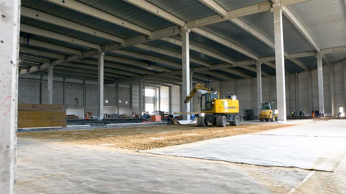 In opdracht van Delporte plaatste Geolock 24.000m2 bentonietmatten voor Katoennatie. Het plaatsen van deze bentonietmatten zorgt voor een vloeistofdichte laag onder de magazijnvloeren.