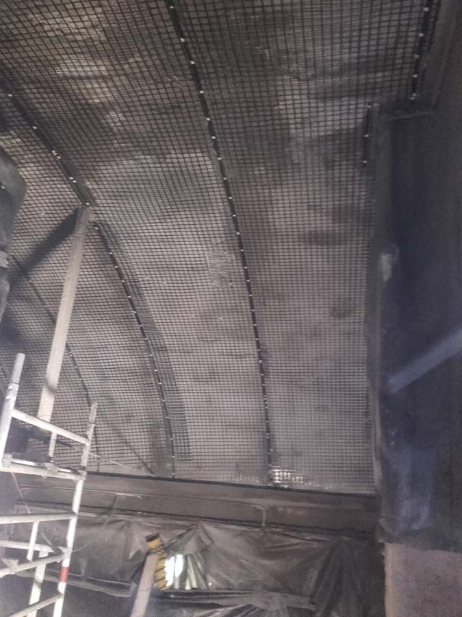 Aangezien de belangrijke aantasting aan de oude wapening werd een carbonnet geplaatst om de structuur voldoende sterkte te geven. Dit werd degelijk verankerd aan het oude beton maar vooral aan de dragende ribben.