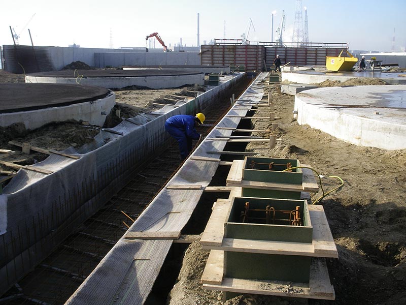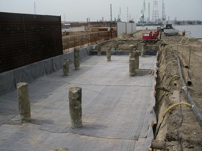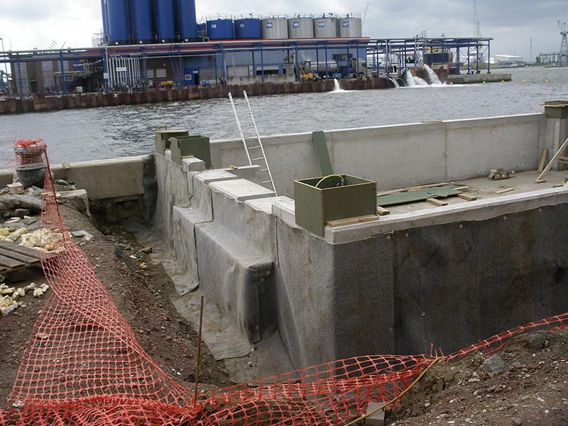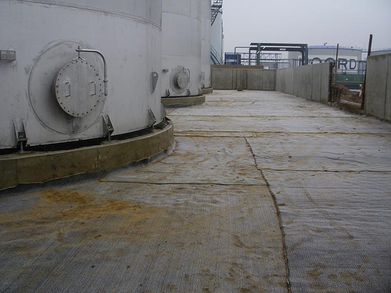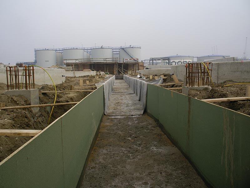 Zowel het tankenpark zelf als de laad- en los kades voor vrachtwagens, schepen en treinen werden voorzien van een vloeistofdichte bentonietmat.