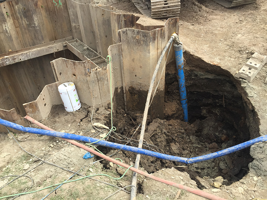 Geolock werd opgeroepen voor dringende interventie in Bergen/Mons. Onze klant Soiltech/Soetaert had hier een diepwand geplaatst door middel van damplanken. Bij uitgraving bleek dat op 8 meter diepte het slot van de damplanken waren open gekomen. Het gevolg hiervan was een zanduitspoeling in de bouwput engrondverzakkingen bovenaan.