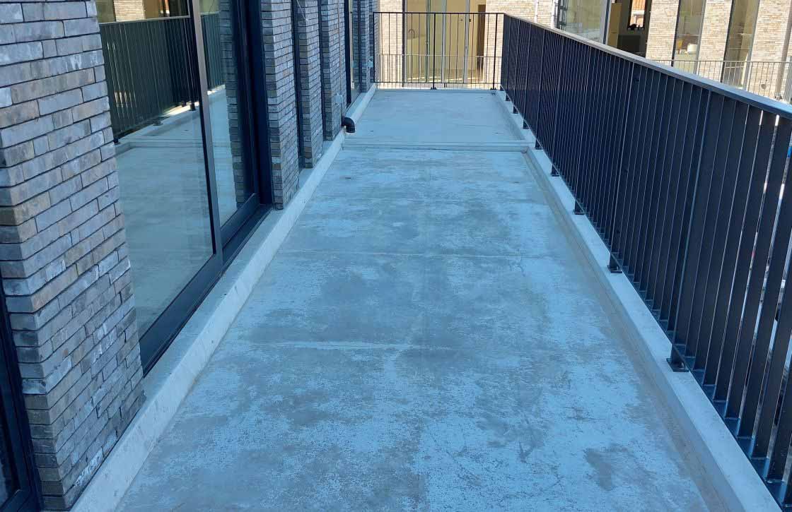 Bij dit project in een recent appartementsgebouw in Schepdaal hebben we een oplossing geboden voor betonbeschadiging door vlekvorming. De volledige toplaag van het aangetaste beton werd zorgvuldig verwijderd, om een duurzame en esthetische afwerking te garanderen.