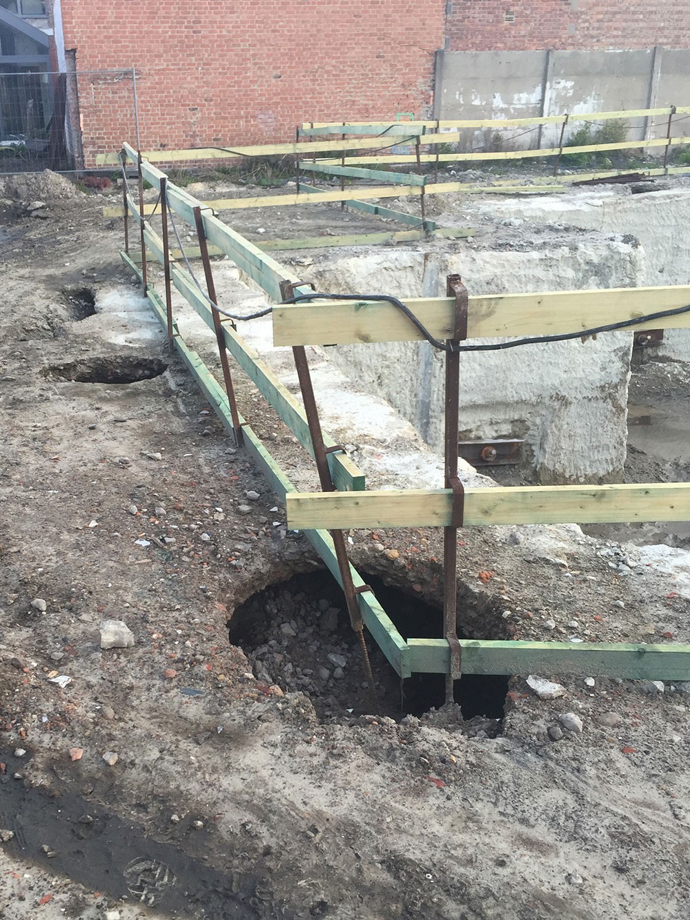 Na het boren en grouten van trek-ankers in een soilmix wand zijn de gaten blijven lekken. Dit bracht zandinspoelingen en grondverzakkingen met zich mee.