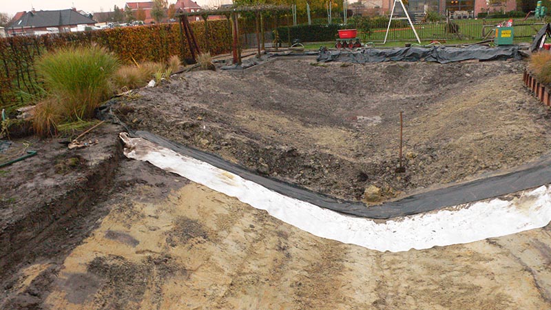 De gebruikte bentonietmat voor deze vijver is de Bentomat CLT5000-100