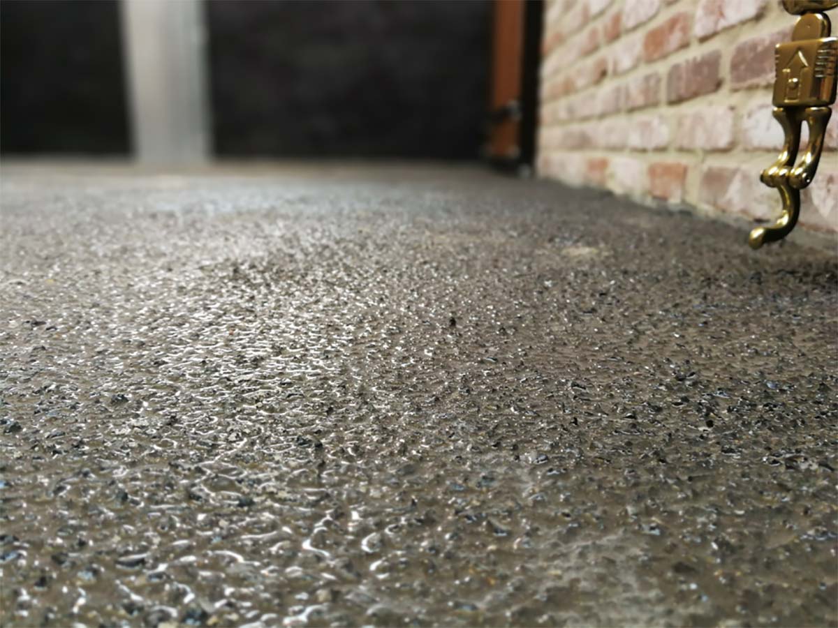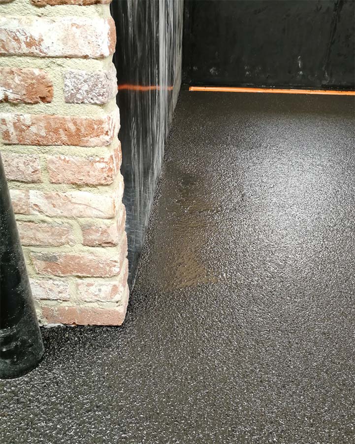 - Detail van de perfecte aansluiting van de gietvloer.