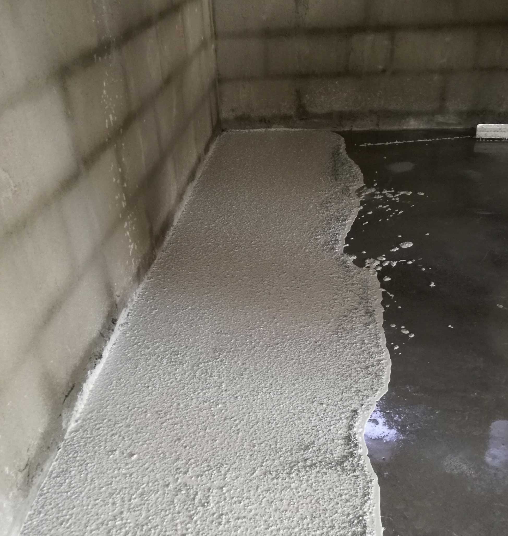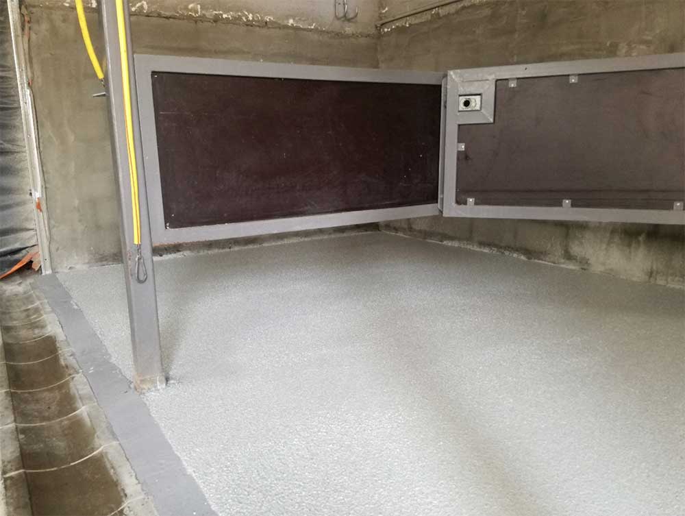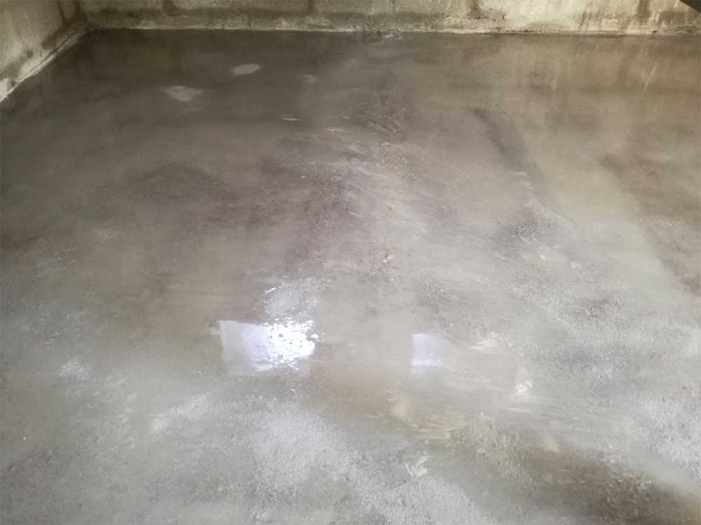 De werken werden uitgevoerd op een oude beton die na een grondige voorbereiding, verwijderen van de verzadigde toplaag, werd voorzien van de nodige uitvlaklaag en primer. Eén dag later werd de polyurethaan gietvloer op een professionele basis uitgevoerd door de firma Geolock. Op vraag van de eigenaar werden de muren voorzien van een waterdichtende laag om het geheel in harmonie te brengen.