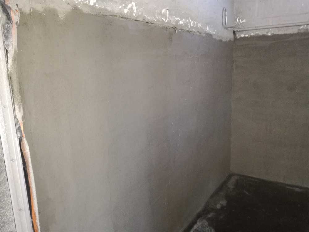 - Vervolgens werden de muren uit gecementeerd met een waterdichte mortel.