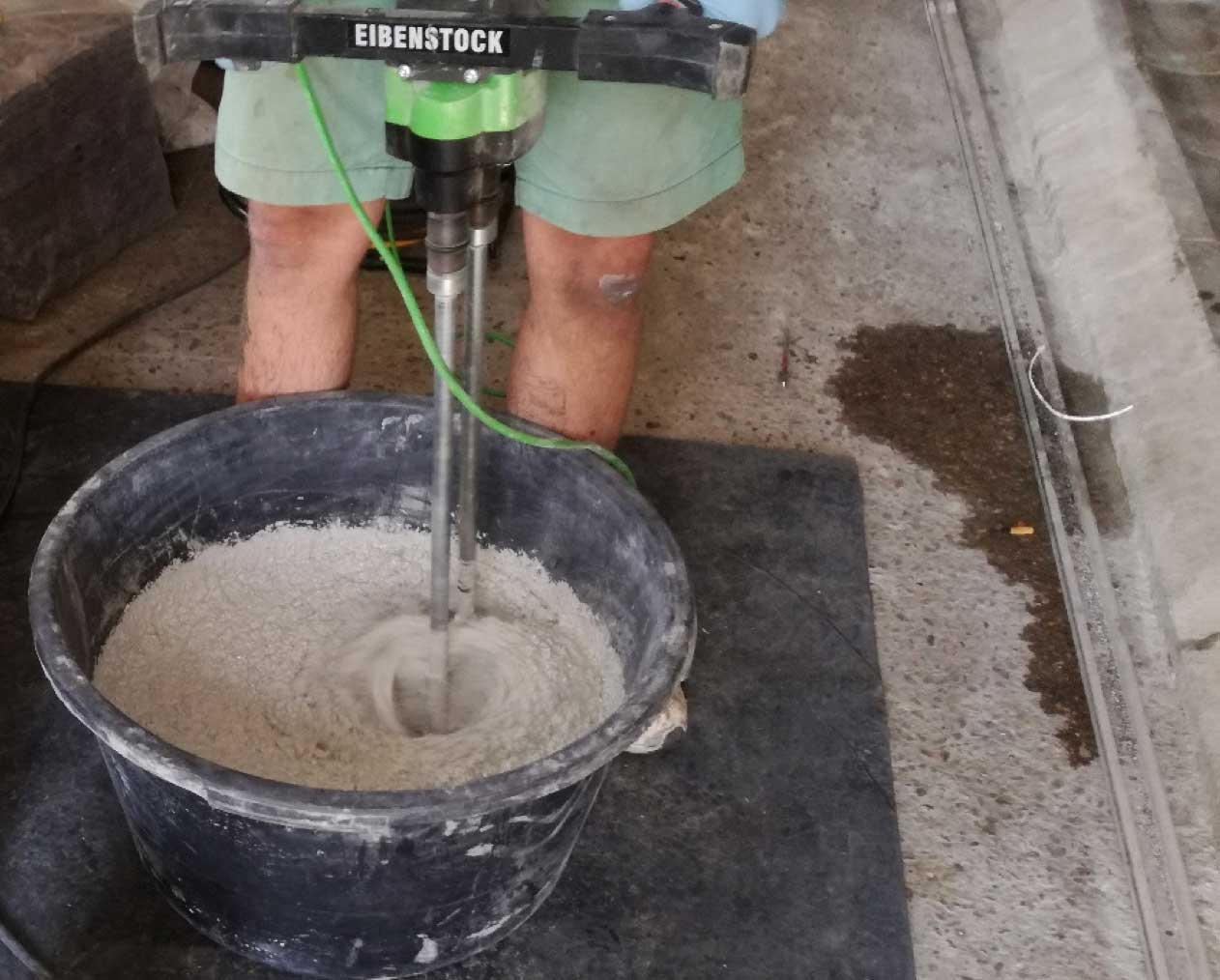 - Het zorgvuldig mixen van de polyurethaan gietvloer.