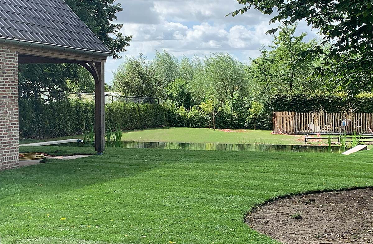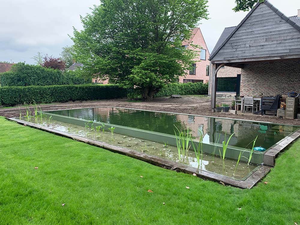 Daarnaast sluit de infinity vijver perfect aan bij de vraag van de klant naar een onbelemmerd zicht over de hele tuin vanuit de woning. Dit zorgt voor een open en ruimtelijk effect dat de natuurlijke schoonheid van de tuin benadrukt. Bekijk ook ons Geopool zwemvijver-concept, een volledige zwemvijver geïntegreerd in een natuurlijke vijver.