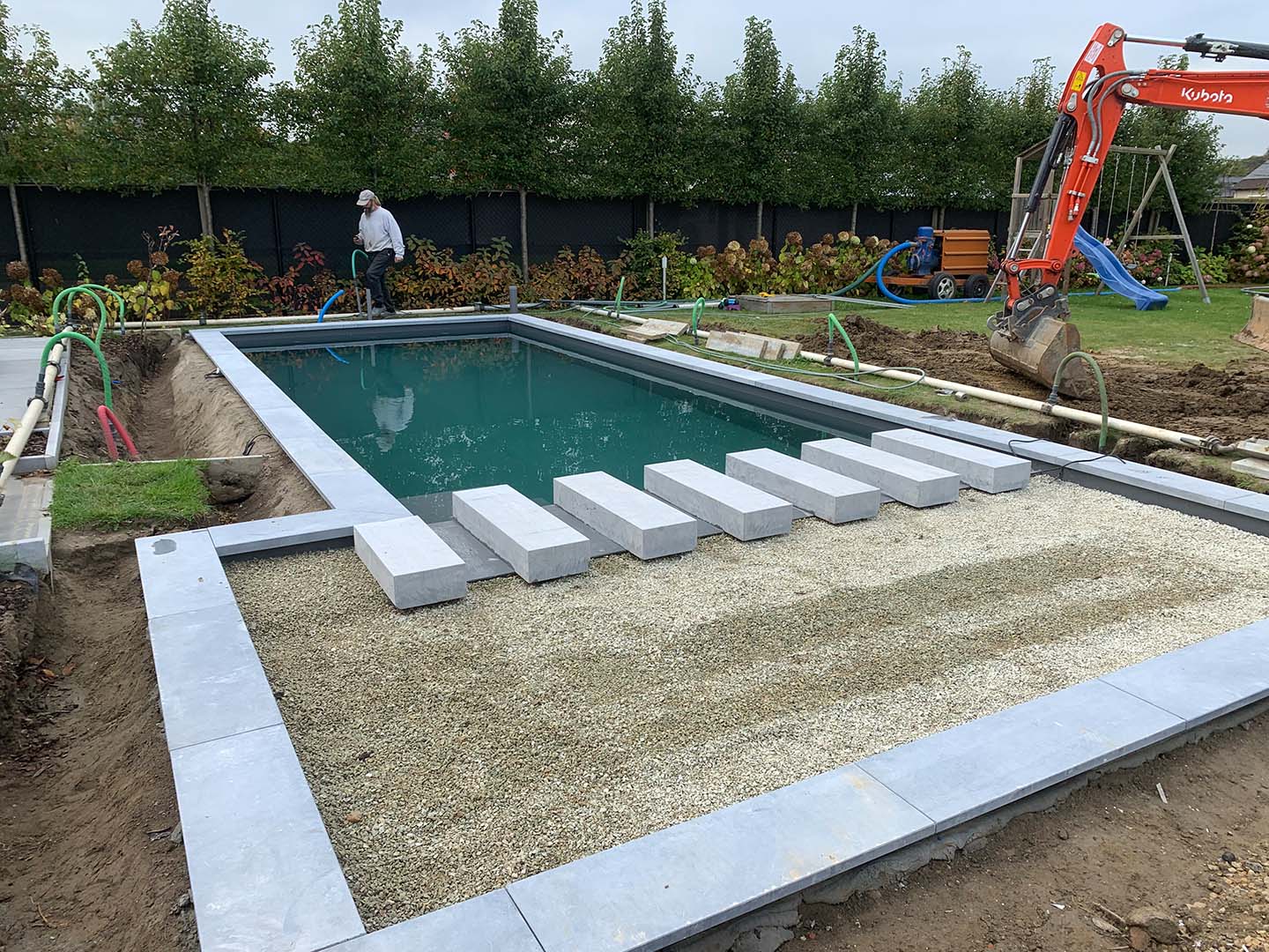 - Afwerking: boordstenen en stapstenen in blauwe steen