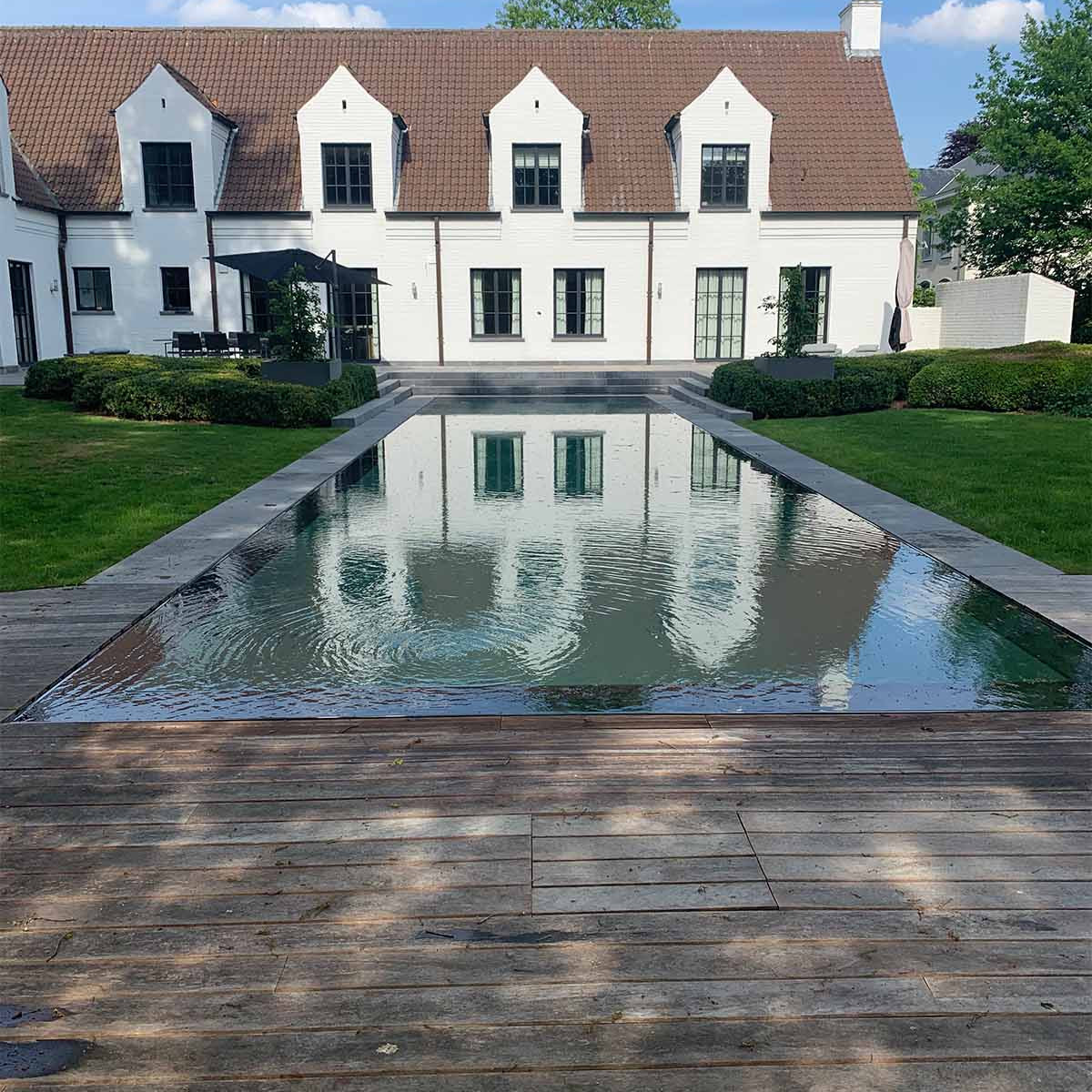 De zwemvijver met zicht op infinity overloop en filtergedeelte